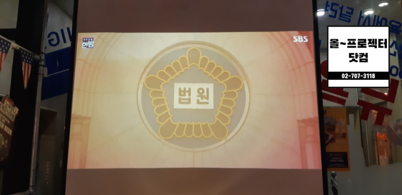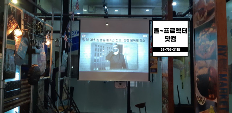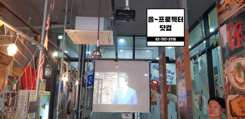 설치한 시간이 오후 3시인데도 충분히 낮에도 볼 수 있을만큼 밝구요, 램프수명이 최대 1만시간까지 갈 수 있는 제품이라 유지비 절약에도 큰 도움이 될 거라 생각합니다. 주위의 다른 곳에서 축구 야구등 스포츠 행사가 있었을때 항상 생각하셨던 프로젝터를 드디어 놓게되어 기쁘시다는 사장님의 말씀이 떠오릅니다. 장사 번창하시길 기원합니다!