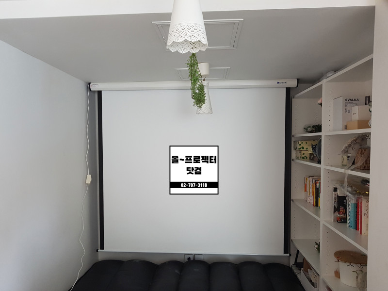 신촌 원룸 전동스크린 노출형 80인치 설치 사진입니다.